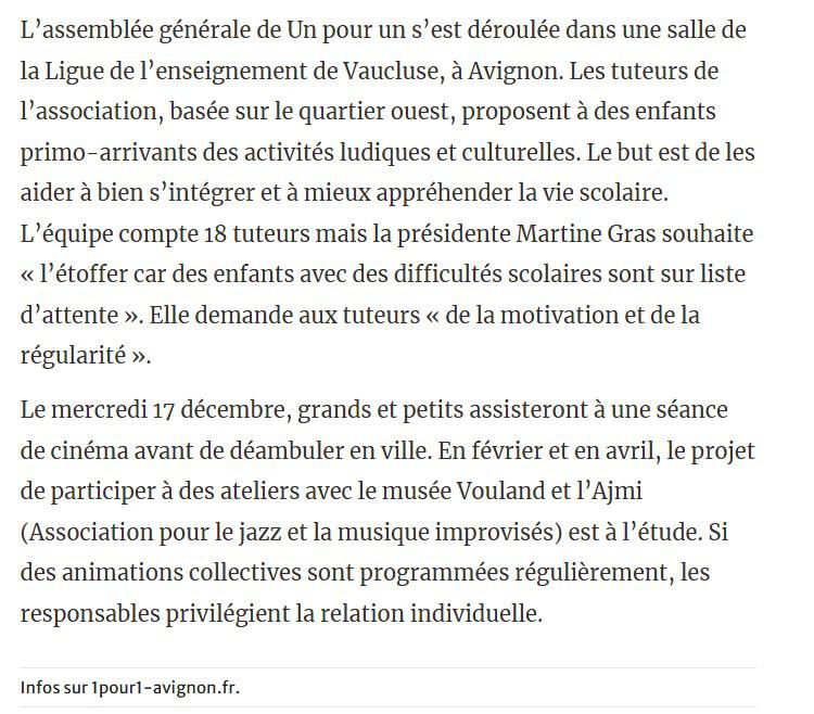 Association Un pour Un - Avignon